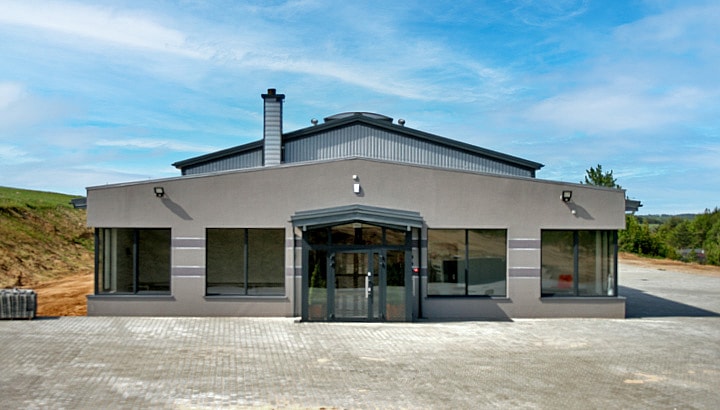 Przeniesienie biur poza halę stalową zmniejsza jej skomplikowanie, pozostawia więcej miejsca na procesy produkcyjne oraz obniża cenę za m2.