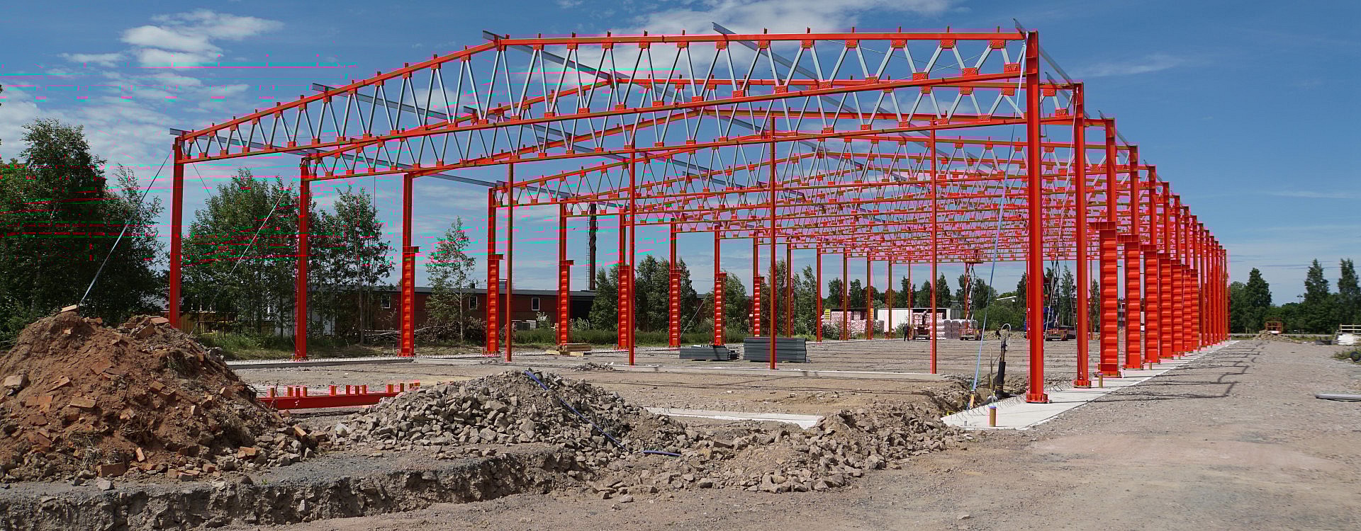 Borga produkuje we własnych zakładach produkcyjnych oba najczęściej spotykane rozwiązania techniczne ram konstrukcji głównej - portalowe ramy spawane oraz kratownicę. Dla kratownicy opracowaliśmy własny, innowacyjny system, który powala na szybki i dokładny montaż przy pełnej prefabrykacji. Kratownica jest rozwiązaniem technicznym przeznaczonym przede wszystkim do budynków o dużych rozpiętościach. Podczas gdy ramy portalowe mają najlepszy stosunek szerokości do ceny za m2 przy szerokości budynku pomiędzy 20 a 30 m, kratownica dobrze sprawdza się przy budynkach o rozpiętości 50 m lub szerszych. Rozwiązanie to jest także korzystne cenowo w halach o wysokości powyżej 8 m w okapie. Zależenie do szerokości budynku najbardziej opłacalnym cenowo nachyleniem dachu jest spadek od 3 do 7 st.