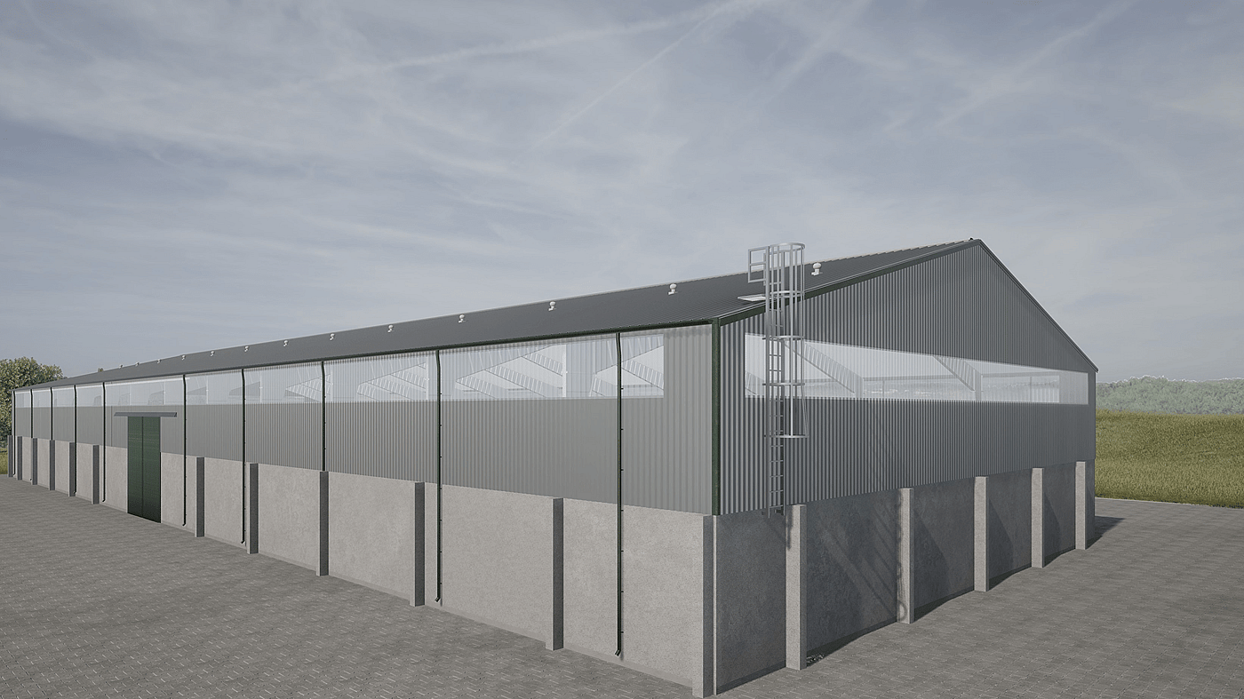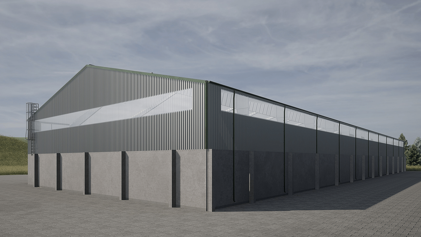 Hala magazynowa na ścianach żelbetowych zaprojektowana z myślą o bezpiecznym przechowywaniu dużej ilości zboża. Jej hybrydowa konstrukcja umożliwia maksymalne wykorzystanie powierzchni składowania i sprawia, że rozładunek i załadunek jest prosty i szybki. Możliwość doposażenia w taśmociąg do transportu poziomego, system ochrony przed wilgocią oraz łatwa kontrola stanu magazynowanego ziarna gwarantują optymalizację zysków z jego sprzedaży.