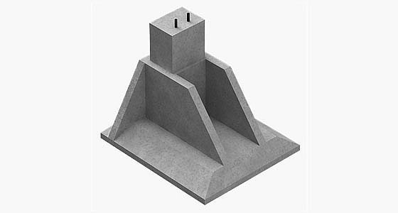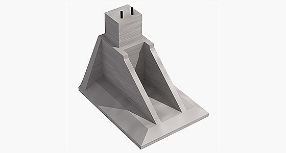 Base slab (mm): 2400 x 2400 Height (mm): 1500 Weight: 3900 kg Top dimension (mm): 400 x 400