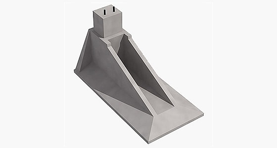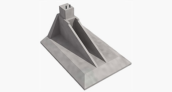 Base slab (mm): 1200 x 1400 Height (mm): 1200 Weight: 1000 kg Top dimension (mm): 350 x 300