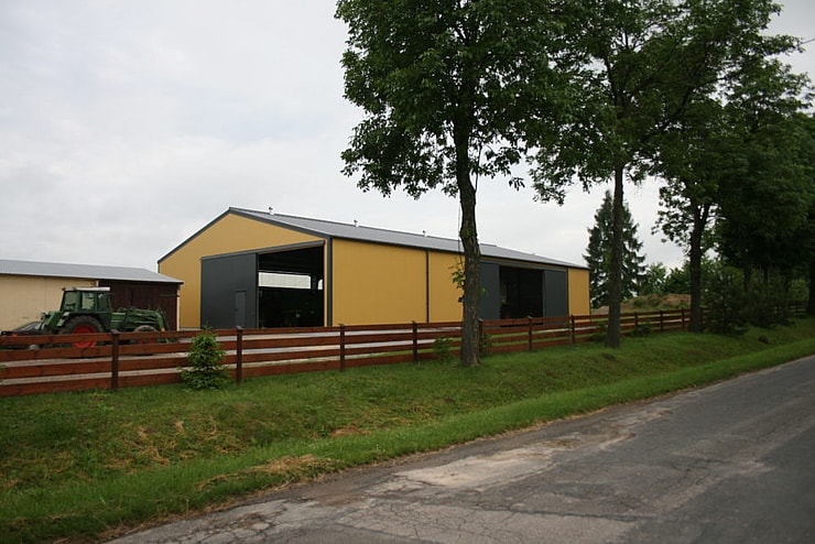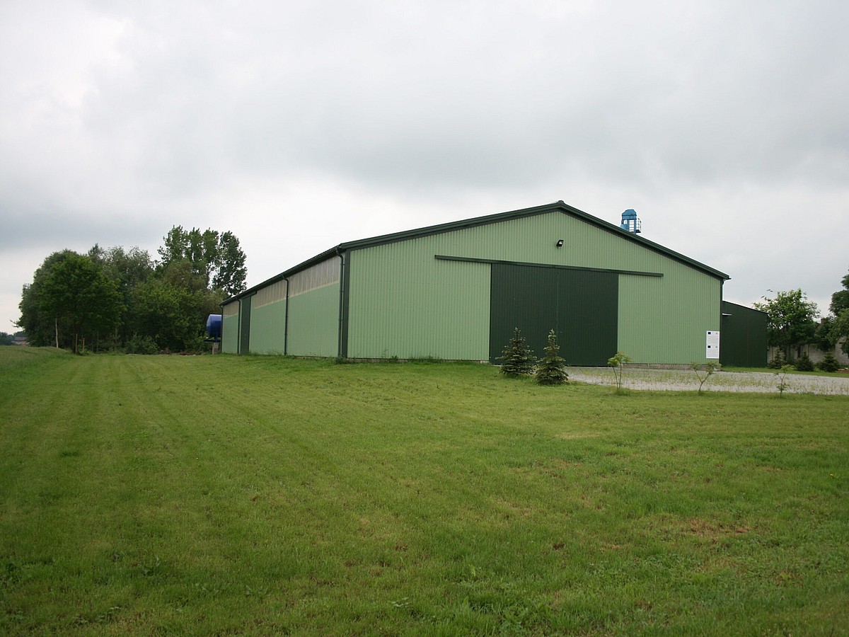 Hala agro Wólka Zdunkówka Poprzednie Wyniki NASTĘPNE z Hala rolnicza wybudowana w województwie lubelskim (hale stalowe Lublin), częściowo finansowana z dofinansowania ze środków unijnych, to nowoczesny i trwały obiekt przeznaczony do różnorodnych zastosowań w rolnictwie. Hala dwuspadowa została zaprojektowana z dbałością o detale oraz funkcjonalność. Na ścianach zastosowano blachę profilowaną BPD-18, a dach pokryto wytrzymałą blachą Super-40, co zapewnia doskonałą ochronę przed warunkami atmosferycznymi. Na ścianie szczytowej zamontowano wrota przesuwne, umożliwiające łatwy dostęp do wnętrza budynku. Hala została w powłoki z blach w dwóch odcieniach koloru zielonego, co pokazuje dwa z wielu kolorów dostępnych w naszej szerokiej palecie standardowej, idealnie komponując się z otaczającym krajobrazem. Sprawdź ceny przykładowych hal Borga Otrzymaj darmową ofertę Dane szczegółowe Ściana Blacha profilowana BPE 18 Profil dachowy SUPER 40 – do ścian i dachów Obszar zastosowania Rolnictwo , Hale magazynowe dla rolnictwa Długość 44 metrów Szerokość 20 metrów Wysokość 4.5 metrów Powierzchnia 880 m² Izolowana Nie Szczegóły projektu Numer projektu 2010052 Kraj Polska Miejscowość Wólka Zdunkówka Drukuj