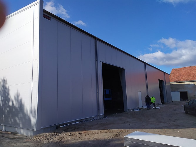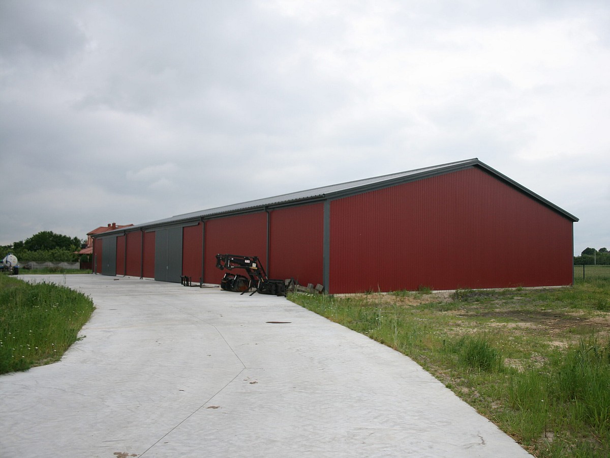Hala magazynowa agro Bedlno Radzyńskie Poprzednie Wyniki NASTĘPNE z Hala agro w Bedlnie Radzyńskim w województwie lubelskim. Hala wyposażona w dwie pary wrót przesuwnych. Hala pokryta na ścianie blachą BPD-18 w kolorze wiśniowym, na dachy blach Super-40 w kolorze szarym. Hala wyposażona w naświetla ścienne po jednej stronie. Otrzymaj darmową ofertę Dane szczegółowe Ściana Blacha profilowana BPE 18 Profil dachowy SUPER 40 – do ścian i dachów Obszar zastosowania Rolnictwo , Hale magazynowe dla rolnictwa Długość 50 metrów Szerokość 20 metrów Wysokość 4.3 metrów Powierzchnia 1000 m² Izolowana Nie Szczegóły projektu Numer projektu 2011035 Kraj Polska Miejscowość Bedlno Radzyńskie Drukuj