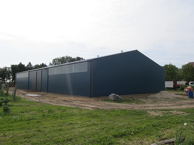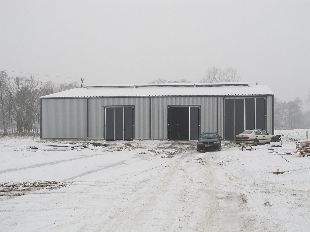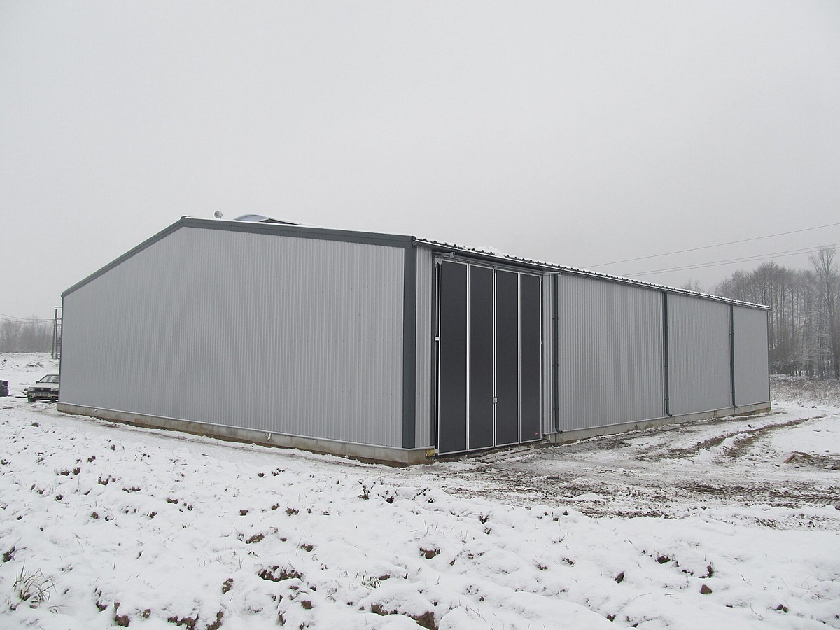 Hala magazynowa Dobrzyków Poprzednie Wyniki NASTĘPNE z Hala izolowana w systemie blacha-welna-blacha. Na zewnątrz i od wewnątrz pokryta blachą trapezową BPE-18. Na dachu blacha trapezowa Super-40. Izolacja wykonana z wełny mineralnej, chronionej przed dostępem wilgoci paroziolacją. Hala wyposażona w bramy rozwierne Prido – dwie 3×3 m oraz dwie 4×4 m. Na dachu izolowany świetlik kalenicowy, stanowiący jedyne doświetlenie budynku światłem naturalnym. Dzięki właściwemu doborowi świetlika (szerokość) cała hala wewnątrz jest doświetlona równomiernie. Hala umiejscowiona w okolicy miasta Płock (hale Płock, hale mazowieckie), w miejscowości Dobrzyków. Otrzymaj darmową ofertę Dane szczegółowe Ściana Blacha profilowana BPE 18 Profil dachowy SUPER 40 – do ścian i dachów Obszar zastosowania Rolnictwo , Hale magazynowe dla rolnictwa Długość 20 metrów Szerokość 25 metrów Wysokość 4.5 metrów Powierzchnia 500 m² Izolowana Tak Szczegóły projektu Numer projektu 2012014 Kraj Polska Miejscowość Dobrzyków Drukuj