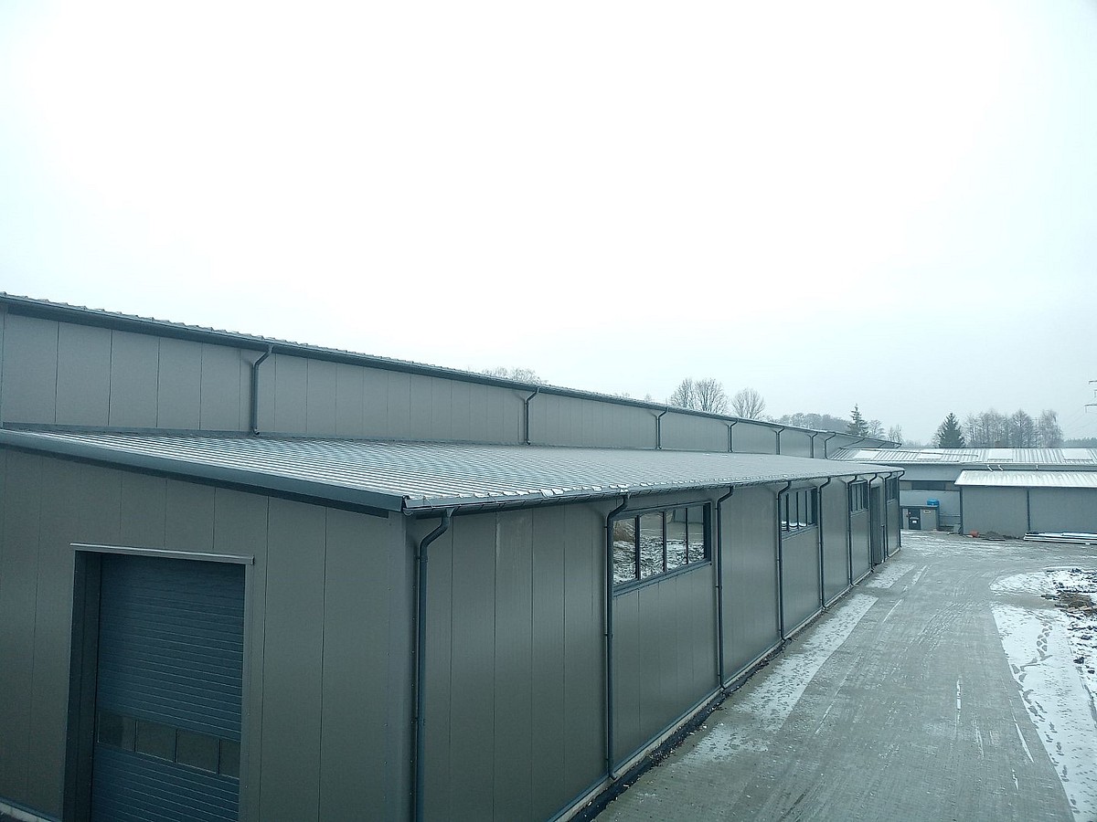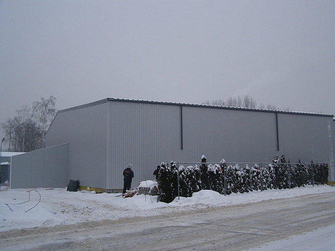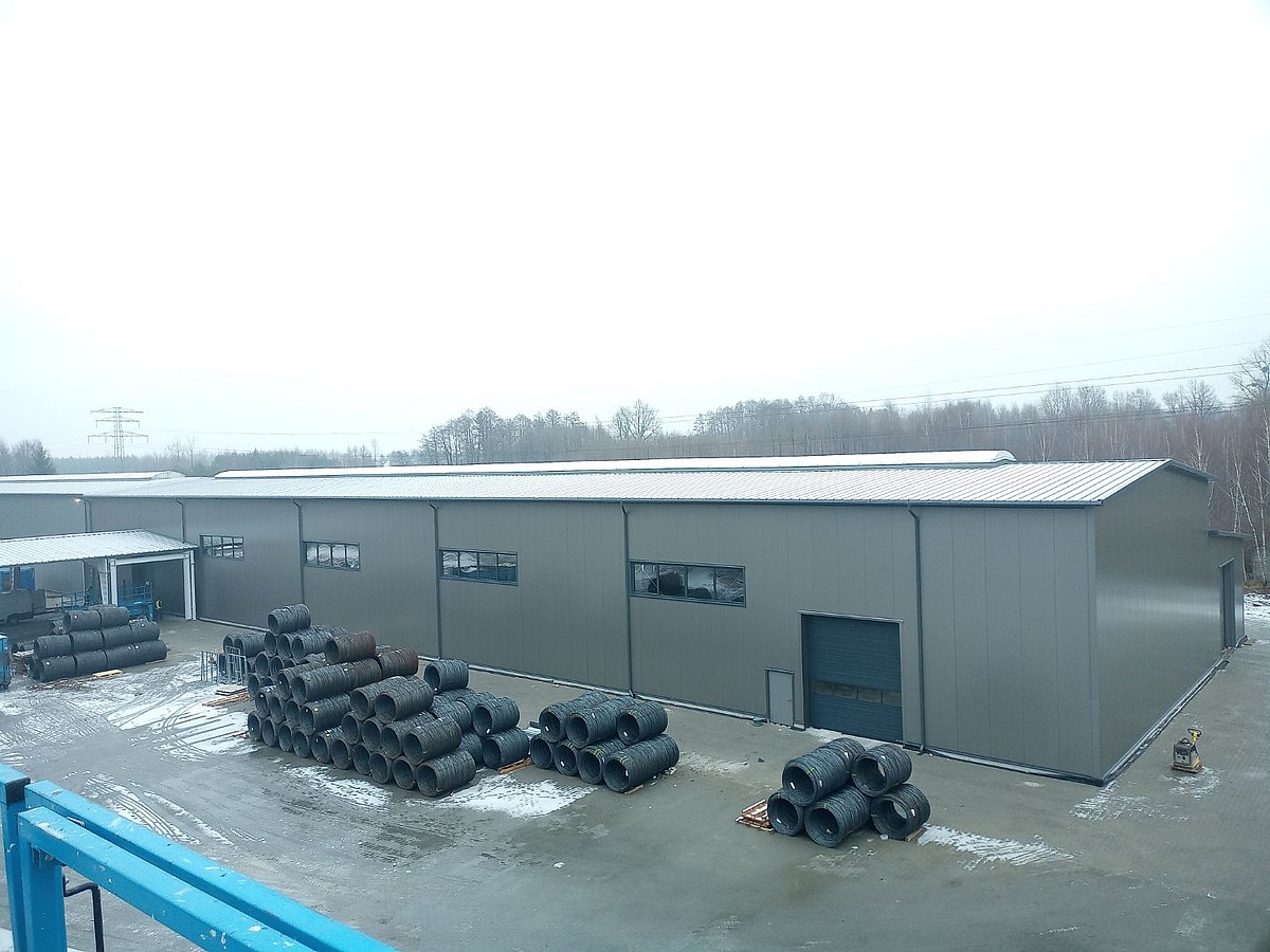 Hala produkcyjna – Augustów Poprzednie Wyniki NASTĘPNE z Sytuacja Klienta: Nasz klient – firma będąca producentem drutu ciągnionego – potrzebował hali produkcyjnej, która w założeniu miała być przedłużeniem już istniejącej hali. Dodatkowa przestrzeń miała służyć jako miejsce produkcji oraz trawialnia. Rozwiązania: Projektując nowy obiekt, dostosowaliśmy nasze rozwiązania systemowe, aby zgodnie z założeniem, stał się przedłużeniem już istniejącej hali: – zmniejszyliśmy nieznacznie spadek dachu (do 6 stopni), – zastosowaliśmy płytę warstwową na ścianach. – dostosowaliśmy odpowiednio wymiary. Ponieważ hala częściowo miała pełnić funkcję trawialni, we wnętrzu (powierzchnia płyt) zastosowaliśmy materiał o podniesionej klasie korozyjności. W konstrukcji wykorzystaliśmy ramy GDYNIA, o stałym przekroju rygla i słupa. Wybór ten nie był przypadkowy. Klient prosił o rozwiązanie, dostosowane do przenoszenia obciążenia suwnicą – ramy GDYNIA wraz z zamontowaną szyną jezdną umożliwiają montaż suwnicy, jeśli tylko zajdzie taka potrzeba. Hala o powierzchni 1466 m2, posiada 2 bramy. Dodatkowo wyposażyliśmy ją w oświetlenie hybrydowe, na które składają się świetliki kalenicowe oraz okienka w ścianach bocznych. Do hali przylega również wiata załadunkowa (339 m2), która umożliwia komfortowy załadunek towarów bez względu na pogodę. Całość została zaprojektowana w kolorze srebrnym z grafitowymi obróbkami, co doskonale nawiązuje do branży, w której działa inwestor, nadając obiektowi industrialny charakter. Efekt: Nowoczesna hala z przybudówką (504 m2) i wiatą przeładunkową, przystosowana do wielu dodatkowych funkcji. W każdej chwili można w niej umieścić trawialnię i suwnicę dla łatwiejszego transportu materiałów wewnątrz hali – doskonale zaprojektowana przestrzeń, której funkcję można zmieniać w miarę rozwoju i potrzeb firmy. Otrzymaj darmową ofertę Dane szczegółowe Ściana Płyty warstowe Profil dachowy Płyty warstowe Obszar zastosowania Hale produkcyjne Długość 78.8 metrów Szerokość 18.6 metrów Wysokość 8.64 metrów Powierzchnia 1466 m² Izolowana Tak Szczegóły projektu Numer projektu 2021230 Kraj Polska Miejscowość Augustów Drukuj