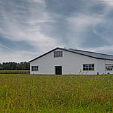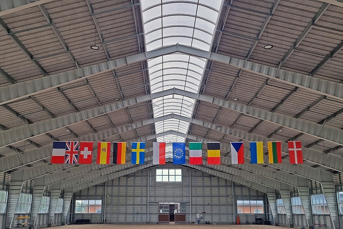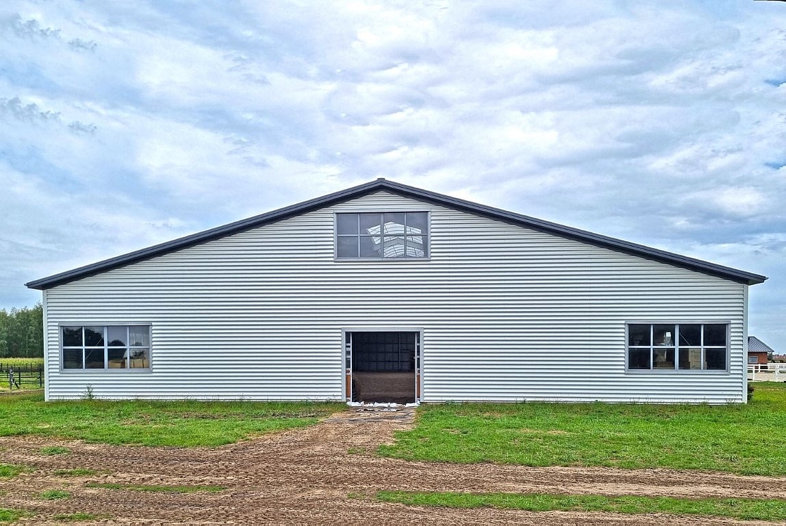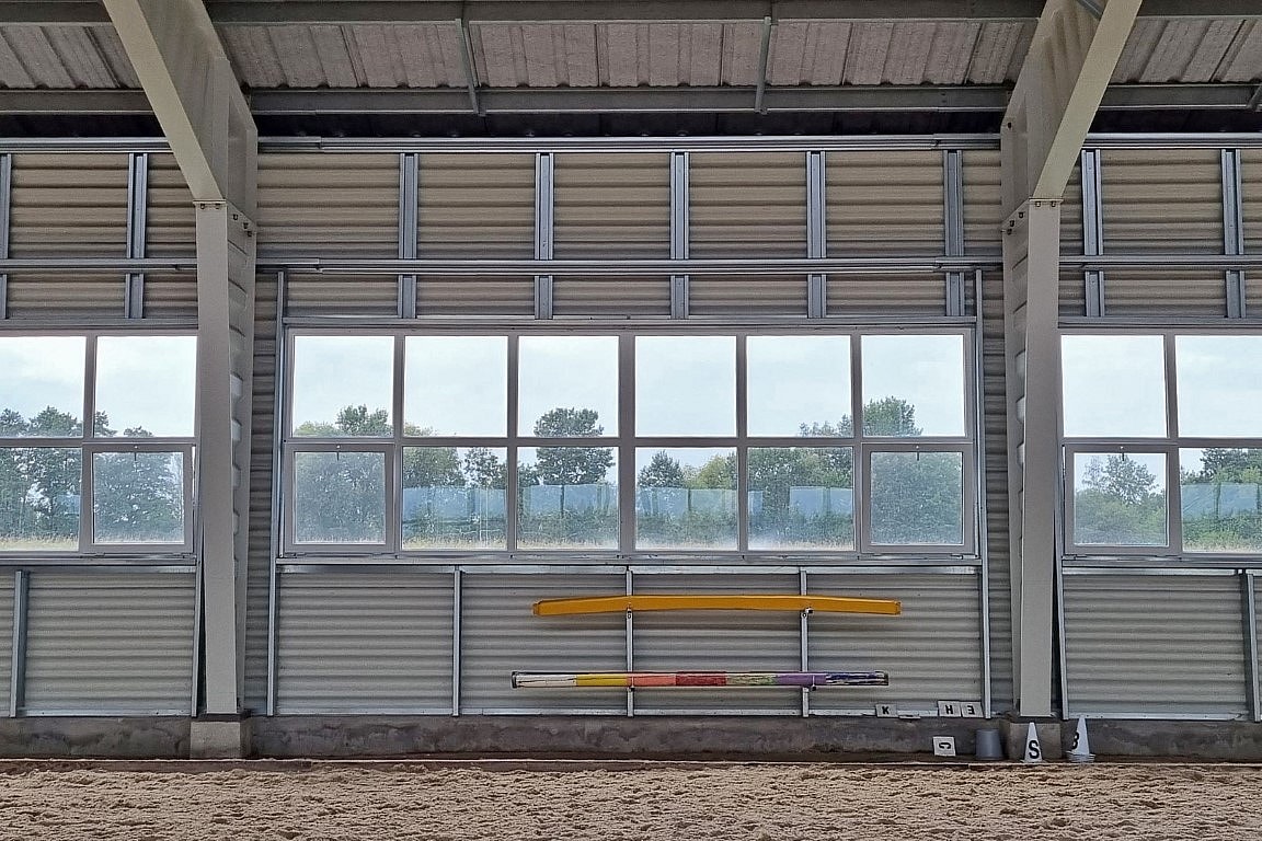 Ujeżdżalnia konna – Jelcz-Laskowice Poprzednie Wyniki NASTĘPNE z Sytuacja Klienta: Największą pasją córek naszego klienta jest jazda konna. Zmienne warunki atmosferyczne nie pozwalały na regularne treningi i progresowanie umiejętności, a dojazdy do najbliższej ujeżdżalni okazywały się coraz bardziej męczące. Pojawiła się koncepcja na budowę praktycznej krytej ujeżdżalni na własne potrzeby. Rozwiązania: Hala stalowa o wymiarach 25 x 60 m pozwala na komfortowy trening nawet najbardziej zaawansowanym jeźdźcom. Budynek nie został zaizolowany, ponieważ główną potrzebą było zapewnienie osłony przed opadami deszczu i śniegu, palącym słońcem oraz ostrym wiatrem. Zdaniem Inwestora, sama temperatura nie ma aż tak dużego wpływu na komfort koni i jeźdźców. Ściany wykonano z blachy SINUS układanej poziomo – głęboki profil fal stanowi dodatkowy efekt wizualny, nadając płaszczyznom ścian trójwymiarowości i oryginalnej faktury. Całość utrzymana jest w jasnych barwach, z dużą ilością okien i świetlikiem dachowym, co zapewnia wnętrzu ogromną ilość światła i wrażenie większej przestrzeni – niemal jak podczas treningu na świeżym powietrzu. We własnym zakresie Klient dobudował obok murowane stajnie. Połączenie stali, drewna i cegły doskonale ze sobą współgrają, tworząc kompleks obiektów o spójnej i przyjemnej dla oka estetyce. Mądrze ulokowane bramy umożliwiają także naturalny przewiew zapewniając szybką wymianę powietrza wewnątrz obiektu. Efekt: Solidna i trwała konstrukcja, dająca przestrzeń, w której pasjonaci mogą rozwijać swoje zainteresowania oraz bezpiecznie i wygodnie trenować przez cały rok – bez względu na pogodę. Otrzymaj darmową ofertę Dane szczegółowe Ściana Sinus Profil dachowy SUPER 40 – do ścian i dachów Obszar zastosowania Ujeżdżalnie , Ujeżdżalnie nieizolowane Długość 60 metrów Szerokość 25 metrów Wysokość 4 metrów Powierzchnia 1500 m² Izolowana Nie Szczegóły projektu Numer projektu 2019091 Kraj Polska Miejscowość Jelcz-Laskowice Drukuj